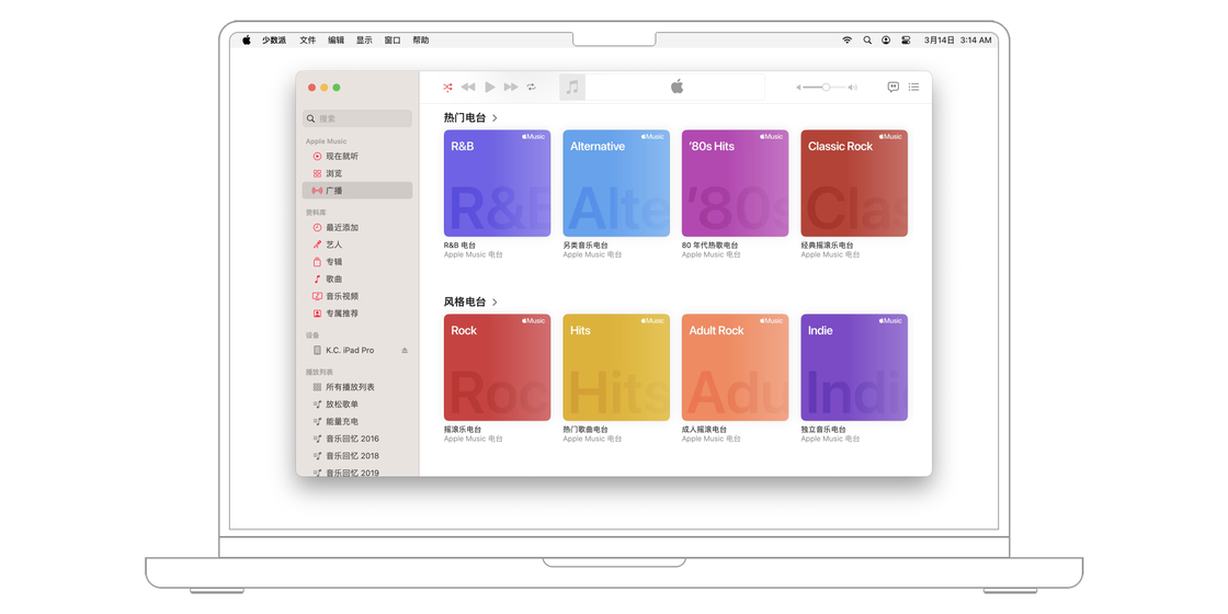 自 Apple Muisc 登陆中国大陆地区以来,「广播」里长期只有「推荐电台」「最近播放」「探索更多」和「电台类型」几个选项,基本都是根据歌曲类型由机器自动生成的一些电台。