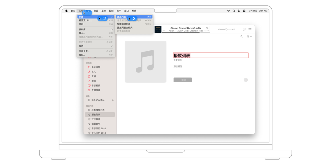 要想创建一个新的播放列表,只需点击菜单栏的「 文件 > 新建 > 播放列表」,即可创建播放列表,还可以为列表添加封面和描述。