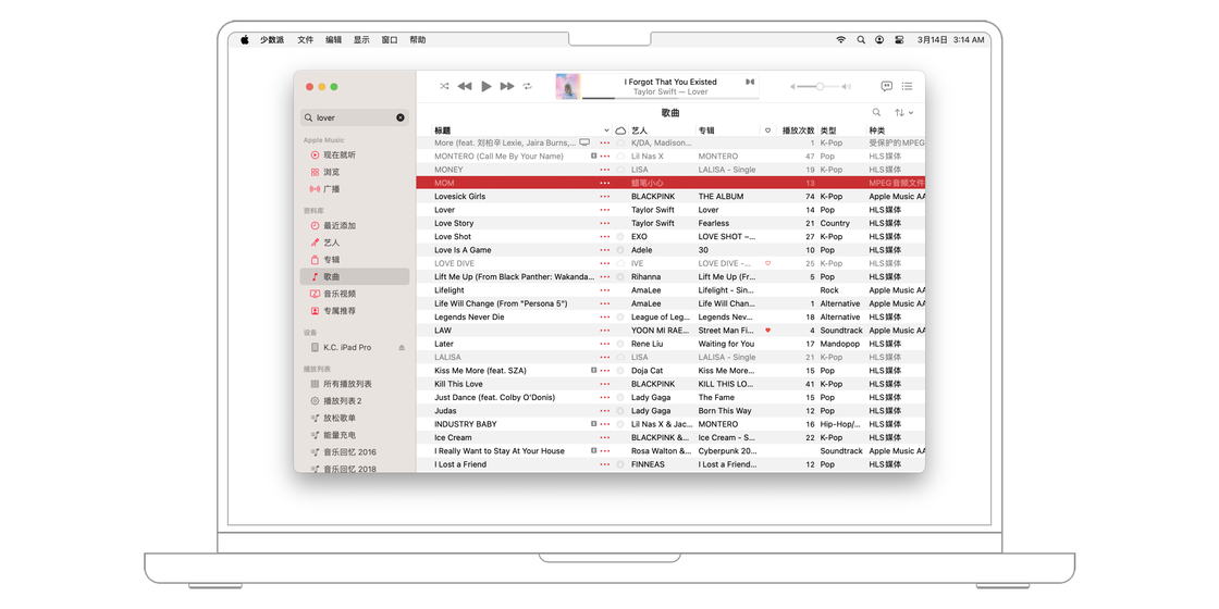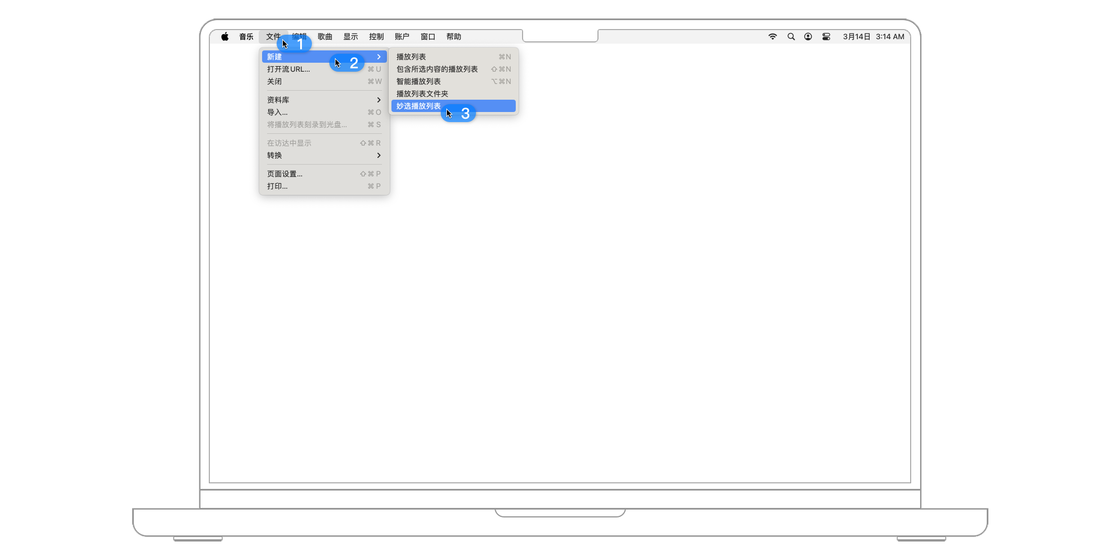另一种则是新建「妙选播放列表」,选取一首歌,然后在菜单栏点击 「文件 > 新建 > 妙选播放列表」,Apple Music 将创建与之完美搭配的歌曲播放列表。