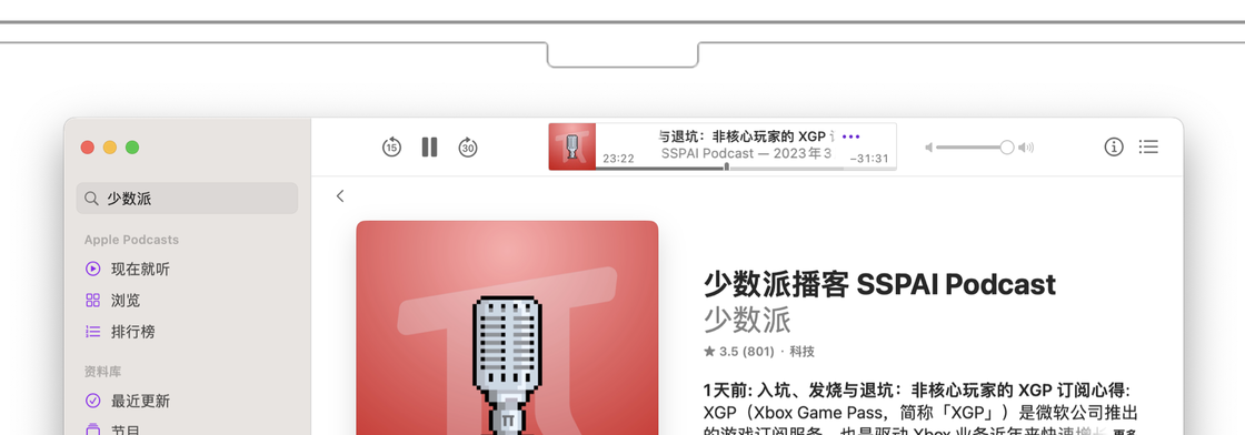 类似于音乐 app,在播放单集时,播客 app 的顶部会出现可以快速控制播放状态的播放区域。