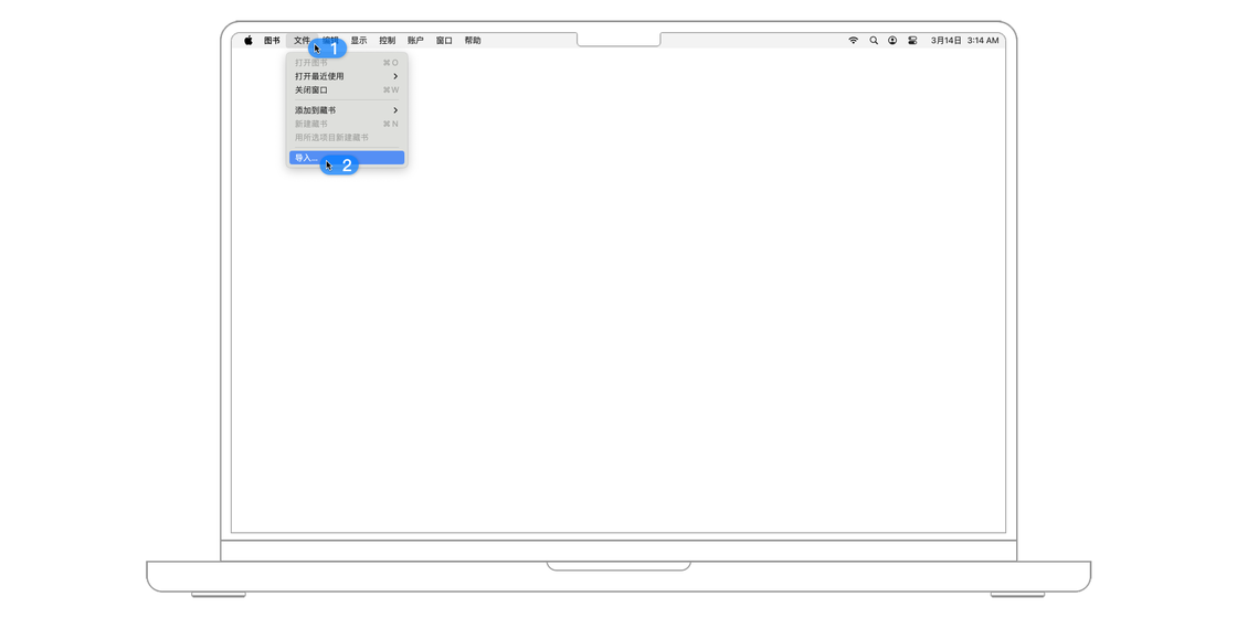「图书」支持 epub 格式和 PDF 格式的文档阅读。如果你手头的文件是其他格式,可以考虑首先使用 Calibre 之类的软件进行转换。本地文件可以直接利用拖拽操作进行导入,当然也可以通过从菜单栏选取「文件-导入...」来导入图书。