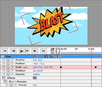 使用具有对象属性的关键帧来进行补间动画、缩放、旋转等。