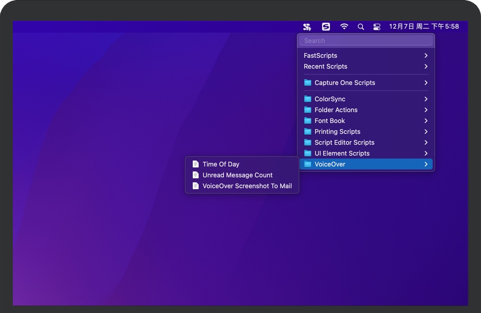 FastScripts for Mac 是一款超强的菜单栏脚本编写实用程序。其自定义键盘快捷键、卓越的脚本运行和直观的脚本管理功能可帮助您快速优雅地完成工作。在这里,我们描述了该应用程序提供的一些不太明显的功能。FastScripts菜单中包含了各种类型的实用脚本,比如选择“Create xxx Scripts Folder”就能为当前程序创建一个以其名字命名的脚本文件夹,此外,FastScripts还可以为每一个脚本设置快捷键。