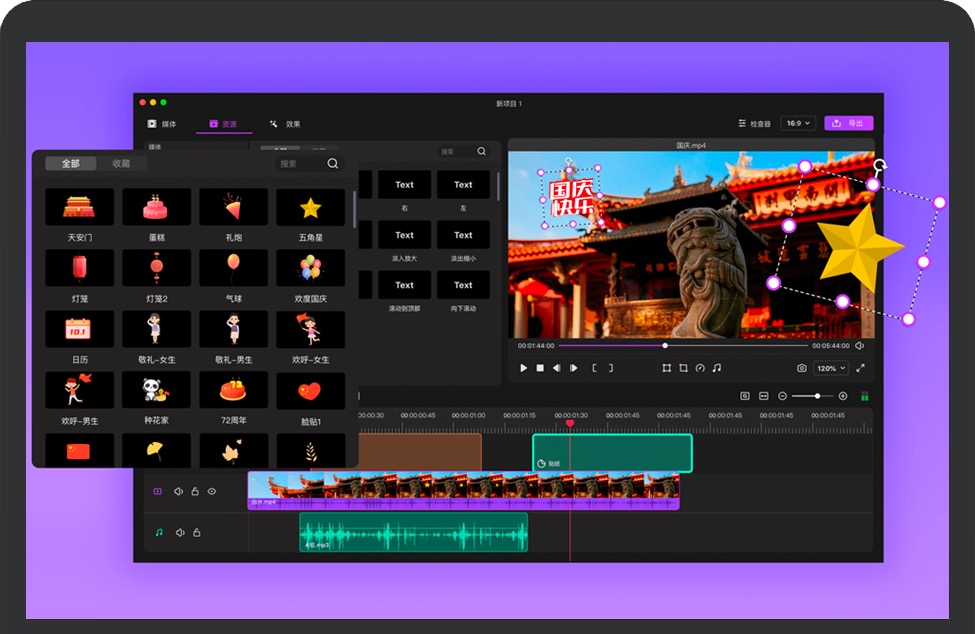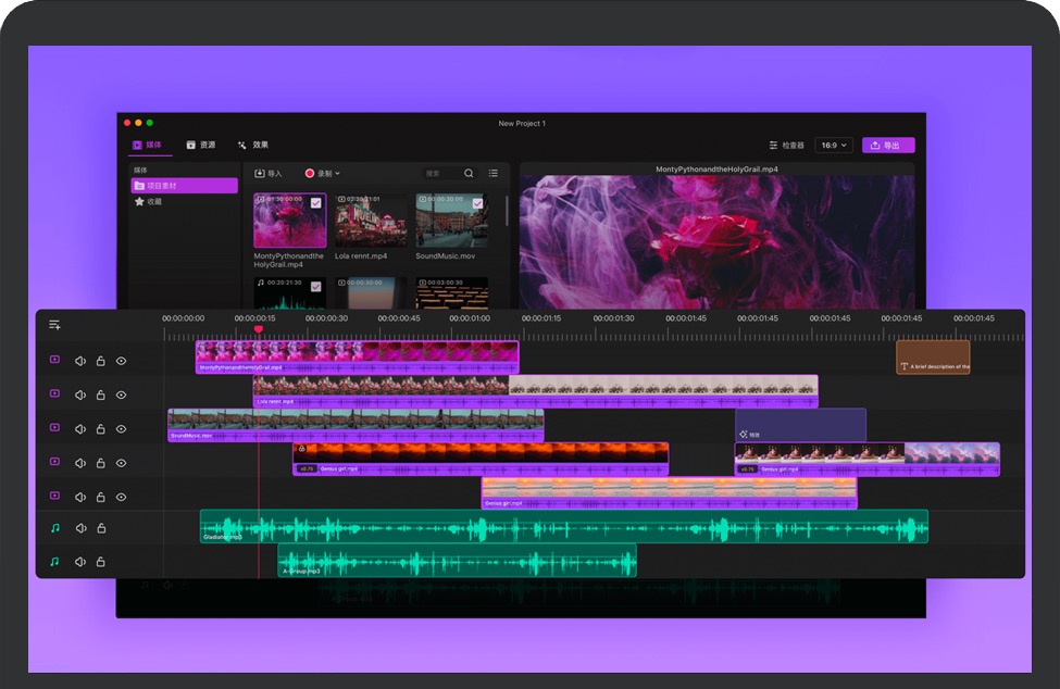 *多轨道剪辑。支持多个音视频轨道,轻松添加视频、音乐、文本和更多效果,有条不紊讲好复杂的故事。