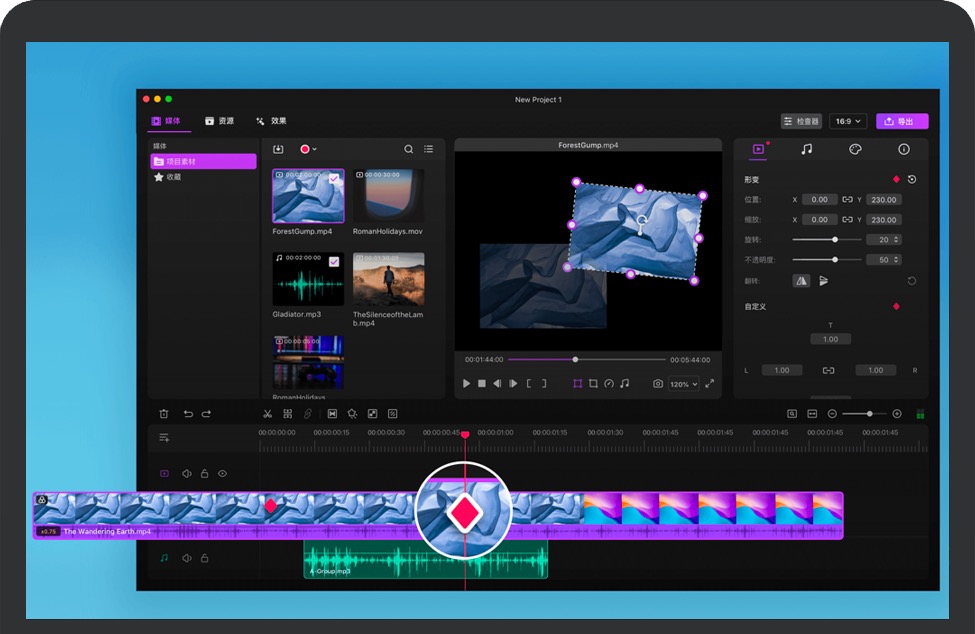 Filmage Editor for Mac 是一款强大专业的音视频编辑软件,功能丰富操作简便,让你轻松制作微课、vlog等视频!更支持自定义关键帧动画、多轨逐帧精确剪辑,把创意分享给世界!使用Filmage Editor进行视频编辑,你可以轻松使用所有高级功能,创作出色的视频。Filmage Editor视频编辑简化操作复杂的专业功能,使每个人都可以快速剪辑视频。即便你从来没有接触过视频剪辑,也能在几分钟之内创建项目、编辑并导出视频!Filmage Editor拥有你需要的所有编辑功能,其中包括多种高级专业功能,例如自定义关键帧动画、逐帧精确剪辑、色彩校正、去除噪音等。