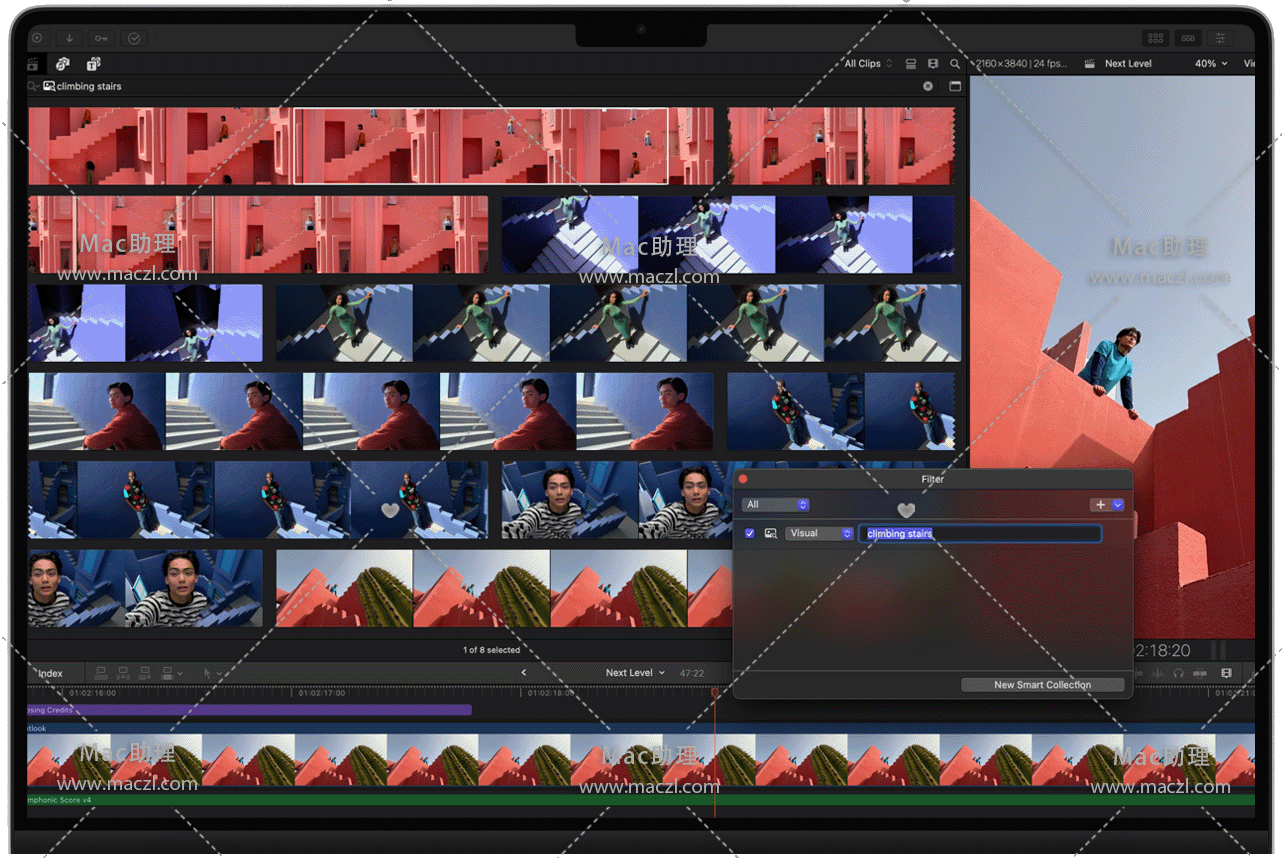 - 磁性时间线使用高级元数据和“片段连接”功能以进行更加快速便捷的编辑