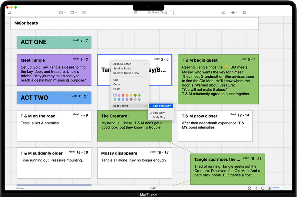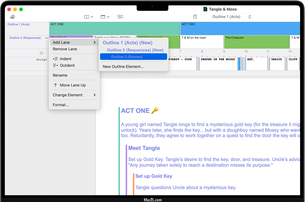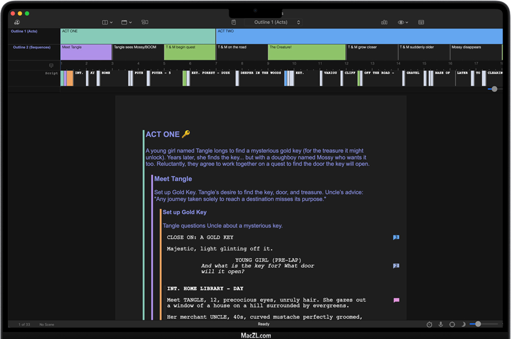 结构线-为轮廓、动作、序列和场景指定颜色,以便在脚本中直观地跟踪它们。
