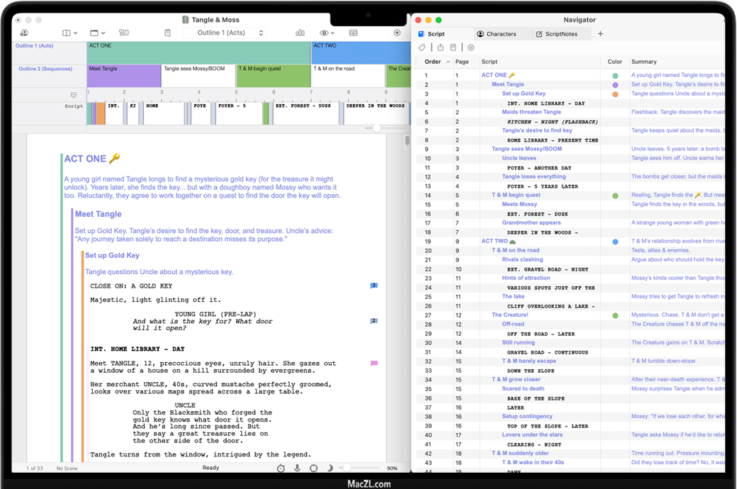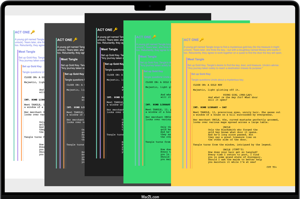 Final Draft for Mac 是一款领先的编剧软件,为作家提供了探索,创建,协作和自动格式化故事,将思想转变为剧本的工具和自由,舞台剧,新媒体等等。被世界各地的制片公司、工作室和电影制作人使用,包括詹姆斯·卡梅隆、JJ·艾布拉姆斯、吉列尔莫·德尔·托罗、乔恩·法夫罗、亚伦·索金和索菲亚·科波拉。《最终稿》会自动将你的剧本格式化为娱乐行业的标准,这样你就可以专注于你最擅长的事情——写作。Final Draft 13提供了一个完全可定制的写作环境,您可以在这里规划、概述、合作和分享您的故事,将您的想法转化为可供制作的脚本。