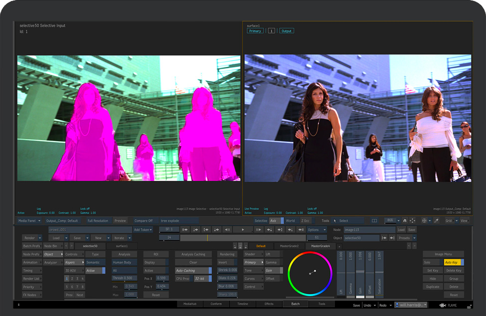 隔离人体和头部,以对镜头进行快速、迭代的颜色分级和光 FX 处理。