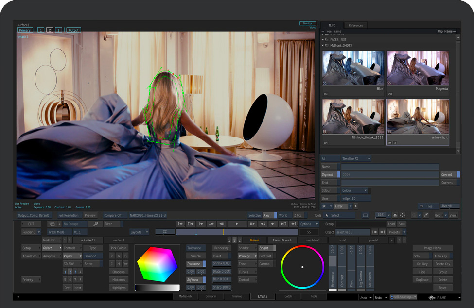 • Flame 使您能够更快地超越客户的需求,无论是将巨大的CG怪物带到纽约街头,还是为世界下一位音乐巨星添加数字化妆。