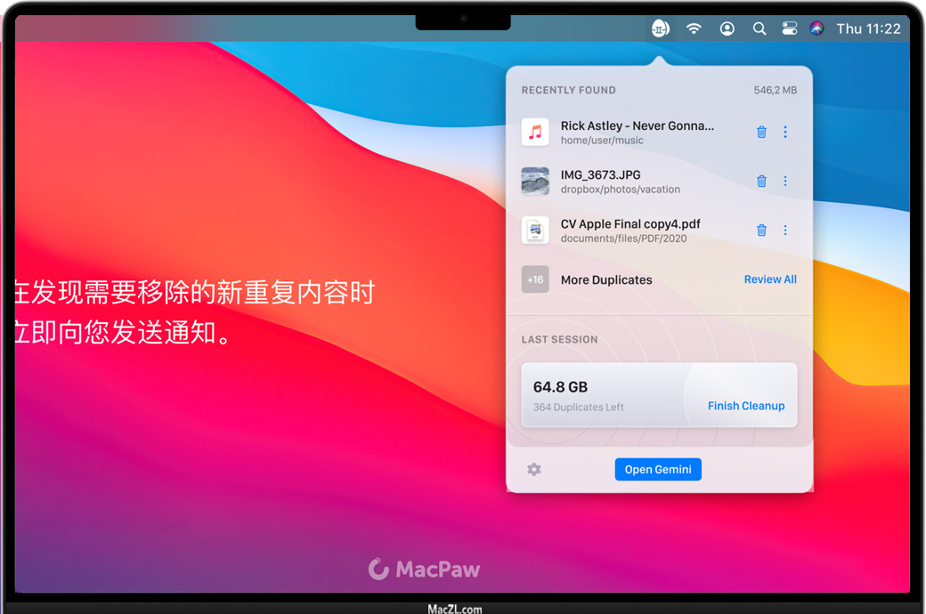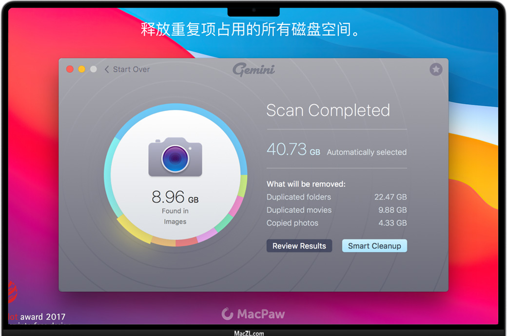Gemini 2:这是一款重复文件查找程序,与 CleanMyMac X 出自同一家公司。我们擅长移除杂乱文件和恢复磁盘空间,为此,我们开发了这款重复文件清理工具,帮助您像专业人士一样轻松完成这两项任务。