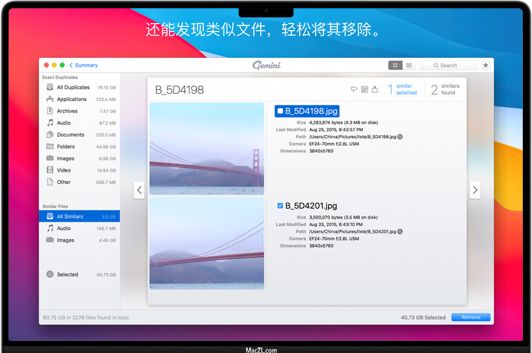 Gemini 2 可以检测 Mac 上的每个角落,包括照片、音乐甚至是外部磁盘,帮助您查找重复项和类似文件, 为您释放大量磁盘空间。