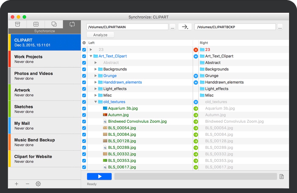 -分析功能允许快速定义哪些文件或文件夹将被同步。