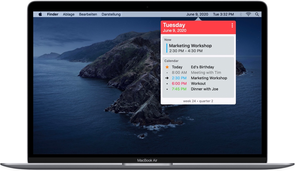 使用 GlanceCal 在 Mac 上更高效地工作。快速轻松地了解当天的情况,并查看下一个约会。使用箭头键,您可以将视图切换到任何一天,以查看明天或两周后的日程安排。