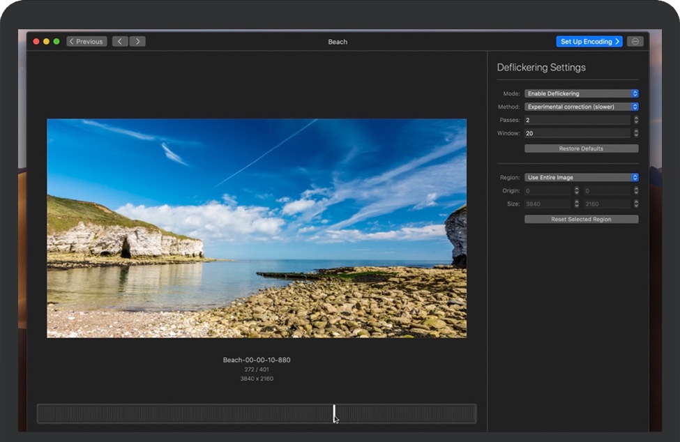 GlueMotion 提供以 MOV、MP4 和 M4V 格式导出您的视频。很少需要使用其他软件将您的照片拼接在一起。但是,如果您想使用其他编码软件,该应用程序还允许您仅导出校正后的图像或亮度校正。此外,GlueMotion 使用 H264、ProRes 或 HEVC 编解码器以高质量导出您的游戏中时光倒流。