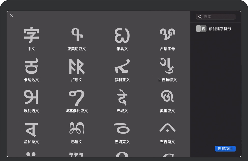 在 Mac 上创建、编辑和管理字体,在环境单词中设计字母造型