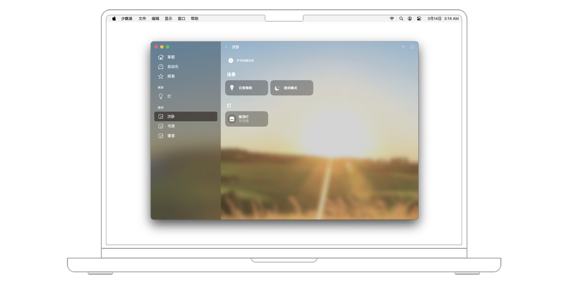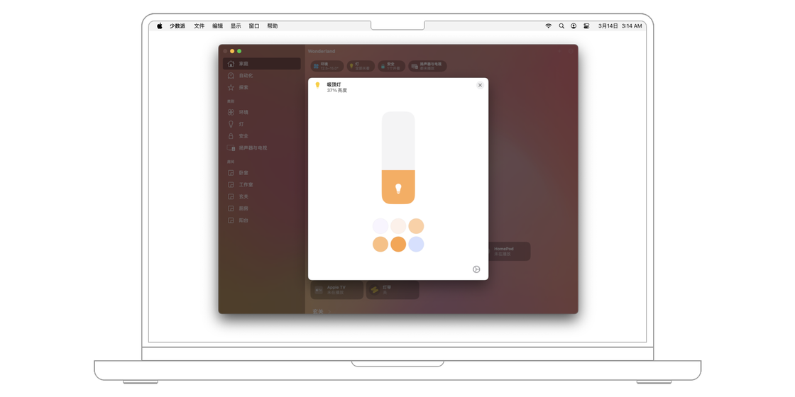而在一些支持的灯具中,家庭应用还为我们带来了「自适应照明」功能,让这些灯具在打开时以不同的色温亮起。例如在起床时为暖光,在需要保持精神和专注的中午时为偏冷光,并在晚上酝酿睡意时移除蓝光。