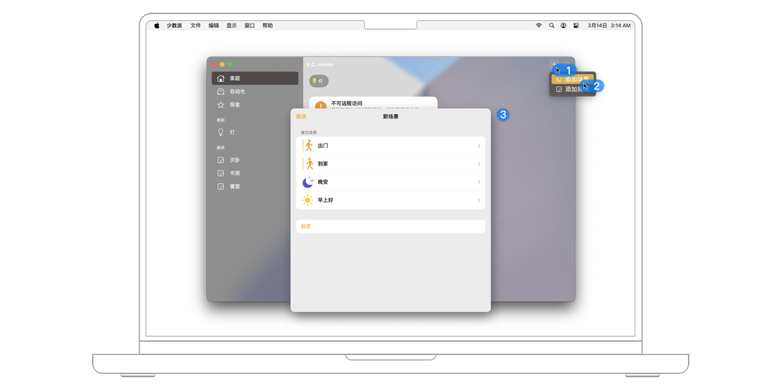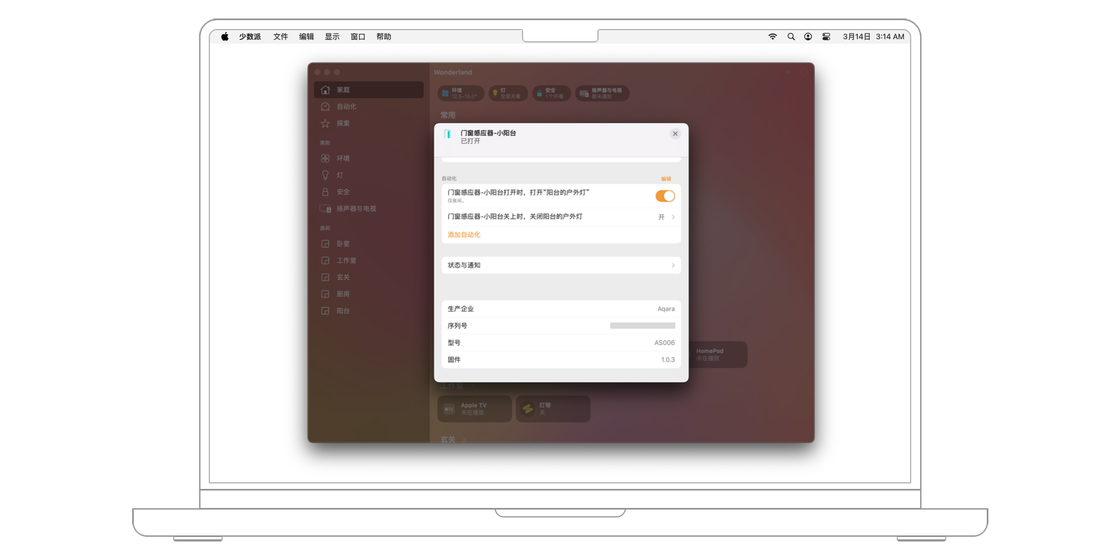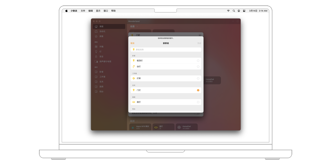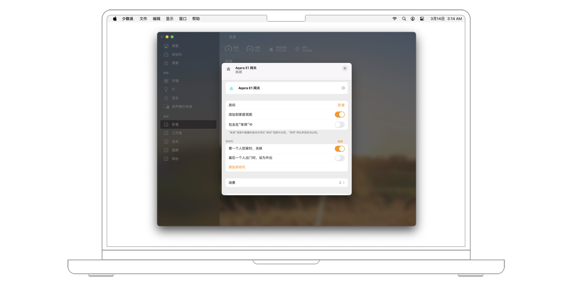 不过,所有 Homekit 设备的添加都需要通过 iPhone 或者 iPad,无法通过 Mac 电脑来添加。