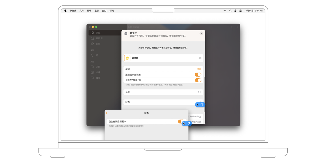 最后,我们还可手动设定某设备是否出现在状态中。操作方法与上文「包含在“家庭状态”中」类似,这里不再赘述。