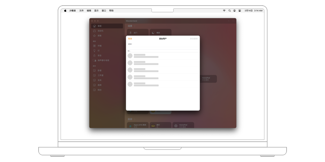 如果我们的家中不止一个人,那么我们还可以将自己的 HomeKit 设备分享给他们使用。