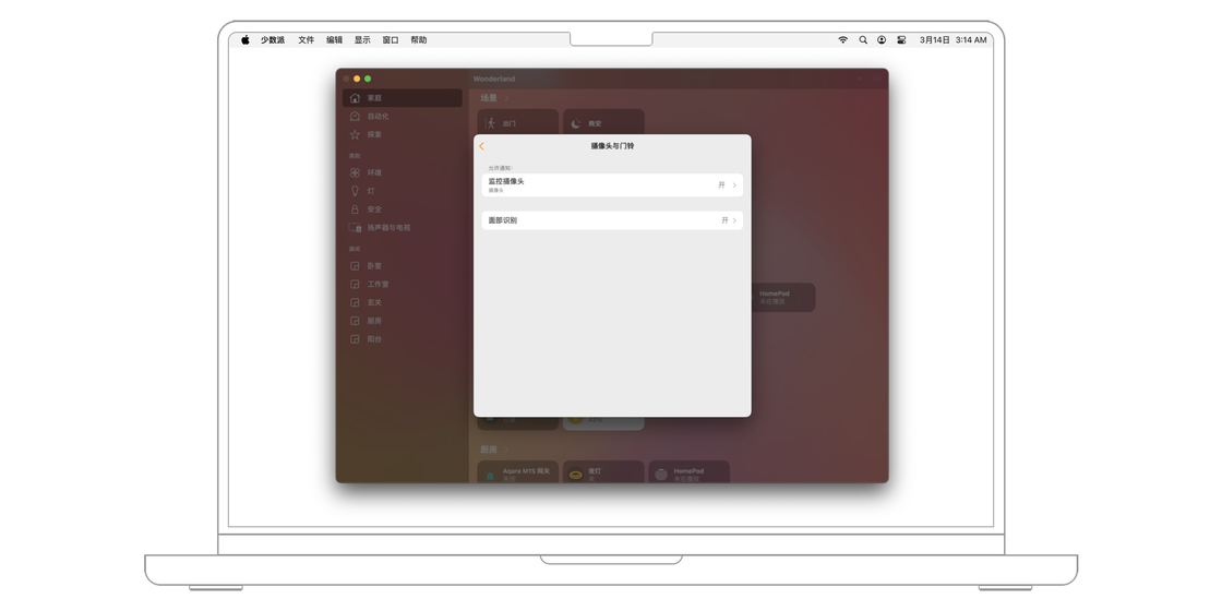 例如,有个家庭的外网断开了,但有了家居中枢,我们仍旧可以在局域网下的 iOS、iPadOS 或 macOS 设备上访问家庭应用内的所有设备,并且 HomeKit 安全摄像头也可以继续进行面部、宠物和包裹识别。
