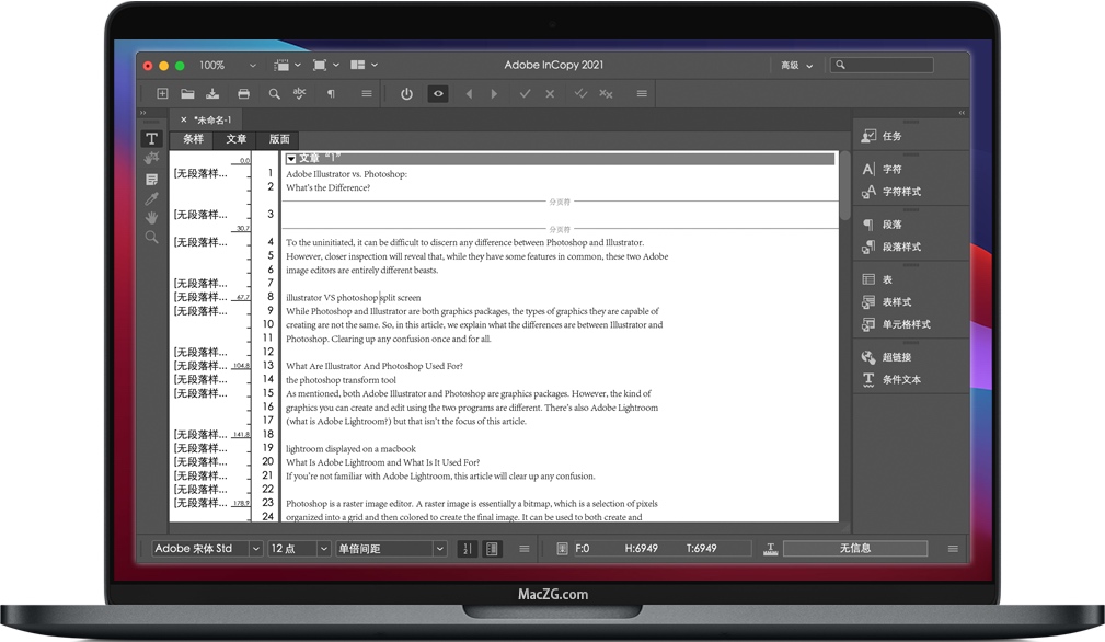 InCopy 2021 for Mac 是一款写作编辑软件。InCopy 2021与Adobe InDesign 配合使用可为作家、编辑、设计师等创意人员提供协作编辑、排版和设计功能。InCopy 2021 for mac是许多人从事文字和图形设计的大型项目的理想选择,文案人员和编辑可以设计文本样式、跟踪更改和对文档进行简单的版面修改,InCopy主要用于文本样式设计、跟踪更改和文档版面修改等,新版本激活了数千种字体,并且支持OpenType SVG字体,可以在表格中插入脚注,带来更快的排版体验。