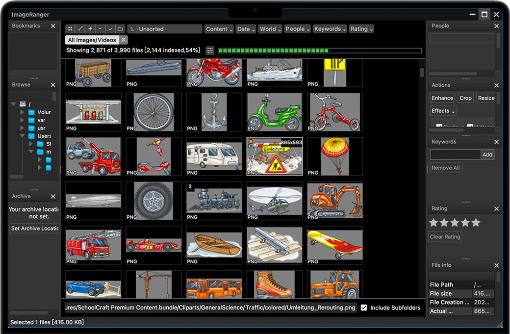ImageRanger 可以索引您的 NAS 和存储驱动器上的数据。这样,您可以轻松地在您的收藏中找到重要的照片。