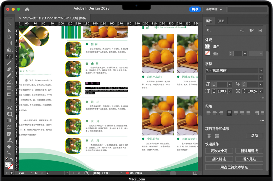 InDesign 2023 for Mac 是一款专业的排版设计软件,Indesign 2023具有丰富的排版和设计功能,可以帮助用户创建高质量的文档、宣传资料、杂志、书籍等。indesign 2023可以与其他Adobe应用程序(如Photoshop和Illustrator)无缝集成,以便更轻松地处理图像、图形和文档,InDesign还提供了一些其他功能,如自定义工具栏、自动化任务、PDF输出选项、高级字体支持、色彩管理等。