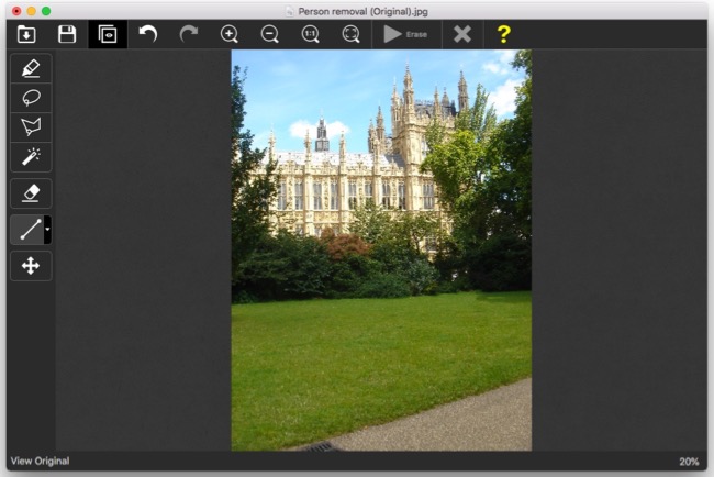 单击“擦除”按钮,您就完成了!人物、物体或文字已从照片中删除。