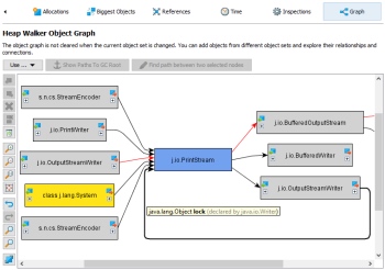 如果没有合适的工具,就不可能找到内存泄漏。JProfiler 的 heap walker 为您提供了一个直观的界面来解决简单和复杂的内存问题。5 个不同的视图和大量检查显示了当前对象集的不同方面。每个视图都为您提供有关所选对象的基本见解,并允许您切换到不同的对象集。单击鼠标即可回答诸如为什么对象不被垃圾收集之类的问题。