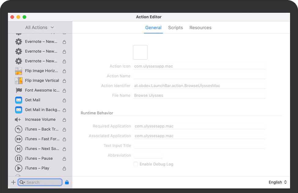 通过编写您自己的操作来扩展 LaunchBar 的功能。支持 JavaScript、AppleScript、Ruby、Python、PHP 和其他几种脚本语言。