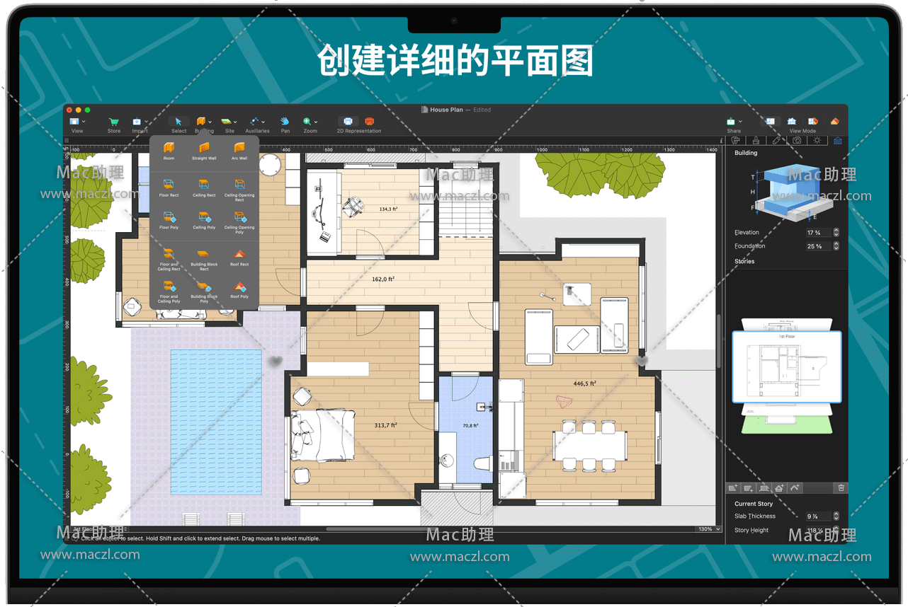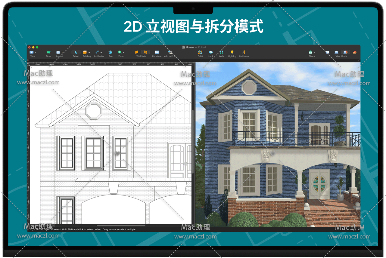 Live Home 3D Pro for Mac 是一款强大的3D室内家居设计软件。Live Home 3D Pro提供更多工具和输出选项,同时保持与标准版一样有趣和易用。它足够强大,足以设计摩天大楼。它也可以设计高级2D平面图,探索房屋设计的2D侧视图,调整门窗或在房屋内安排家具。