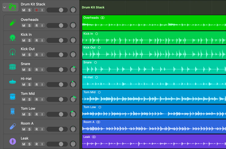 | Track Stack你能将多个相关轨道整合为一个。使用总和堆栈,可以快速创建子混音,也能创建多层或分离的乐器音轨。