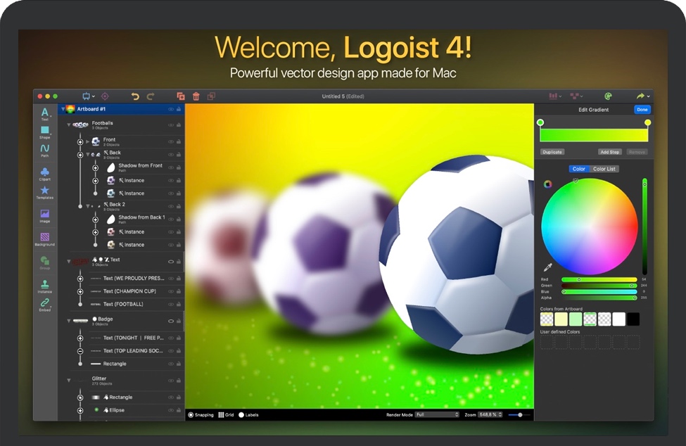 Logoist 4 for Mac 是一款平面设计软件。无论是从简单的标志设计还是到精细的平面设计,只要用 Logoist 4 就能创造出令人印象深刻的图像和矢量图形。它适合各种阶段的平面设计师使用。Logoist 4 提供了大量的内置模板,即使你没有使用矢量应用的经验,也很容易使用,并为专业用户提供了强大的工具,而这些工具在市场上是没有同类品的。