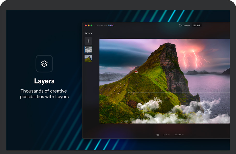 创新技术为表达您的想法和获得专业品质的 Luminar 照片编辑器应用程序提供了一个全新的世界。