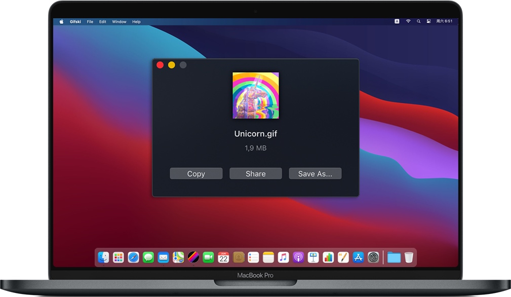 Gifski包含一个共享扩展程序,可让您将视频共享到Gifski。只需从任何macOS应用程序的“共享”菜单中选择Gifski。