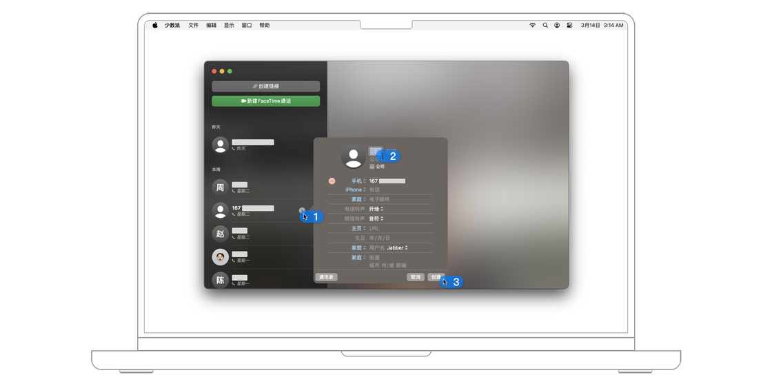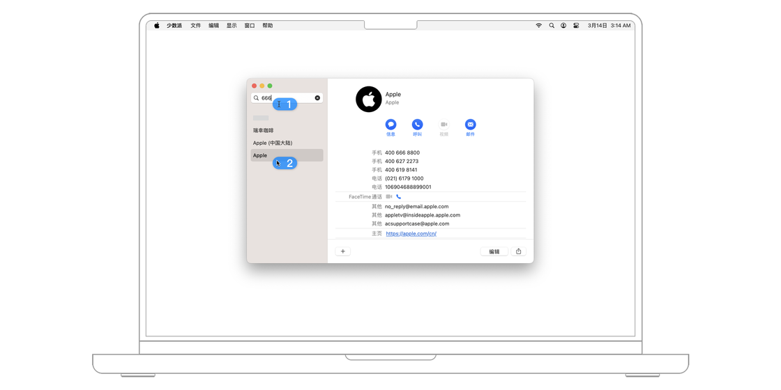 虽然 Mac 电脑不具有手机一样的拨打电话功能,但也可以通过互联网和系统应用来完成一些基础的通讯功能。通过 FaceTime 和 iMessage,Mac 用户可以向其他 iPhone、iPad 或者 Mac 用户发起视频通话或者发送信息,当然,前提是在 Mac 电脑上启用了 iCloud 并且有互联网连接。