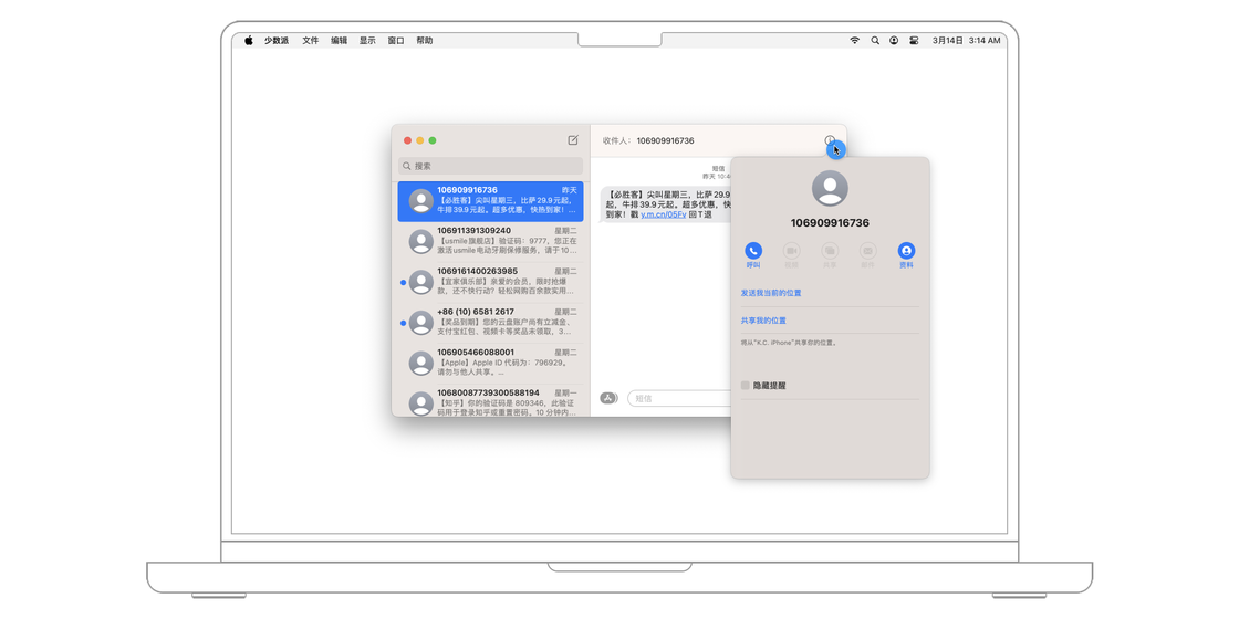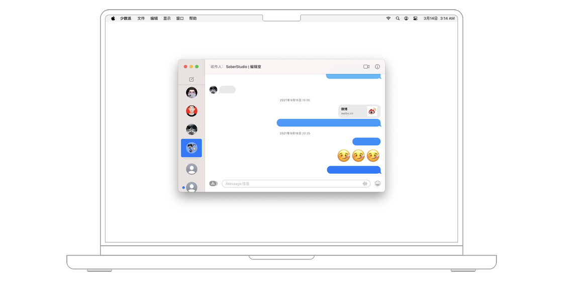 至此,macOS 系统上三款与通讯相关的系统应用就介绍完毕了。相信大家经过这一章节对三款应用详细的功能介绍和操作解析,应该可以熟练地掌握它们的使用方法了。当你的 iPhone 不在手边或者在 Mac 上专注工作时,可以通过这三款通讯应用来完成临时的交流沟通任务。