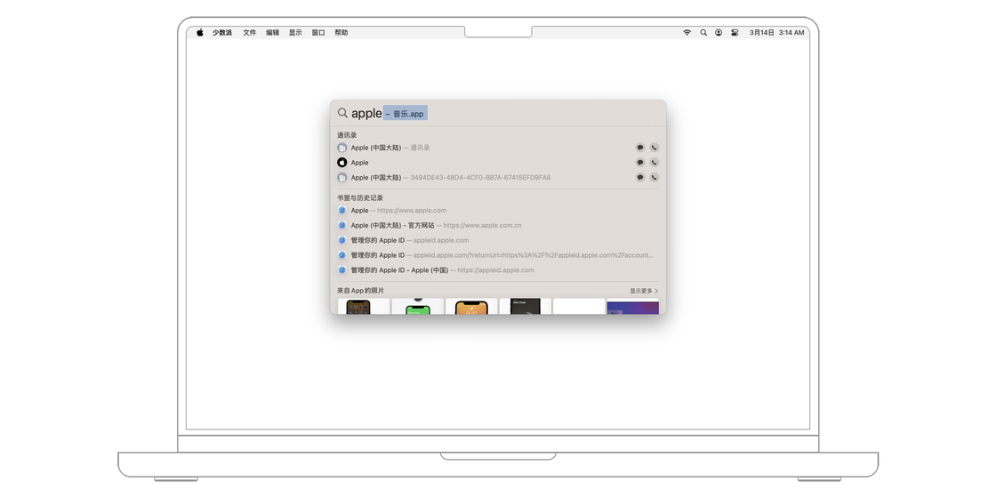 当然,你也可以在直接 Spotlight 聚焦搜索中查找联系人信息。
