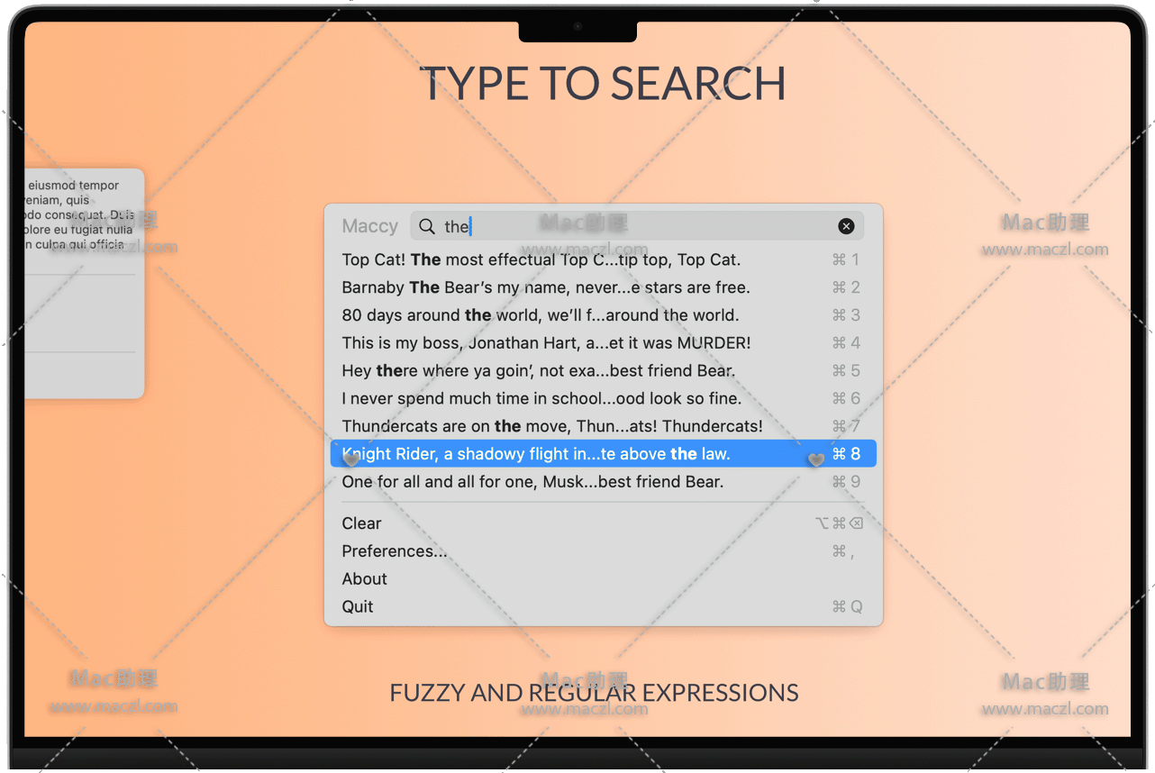 轻便快捷Maccy 的运行速度极快。只需不到一秒,即可打开并搜索整个剪贴板历史记录。您不会受到任何干扰,可以专注于当前工作。 |