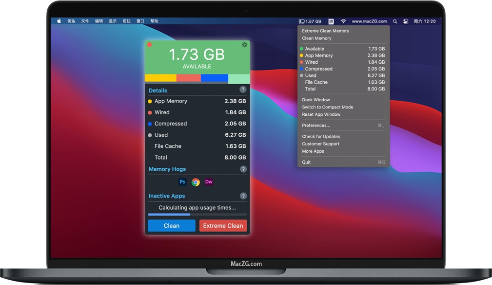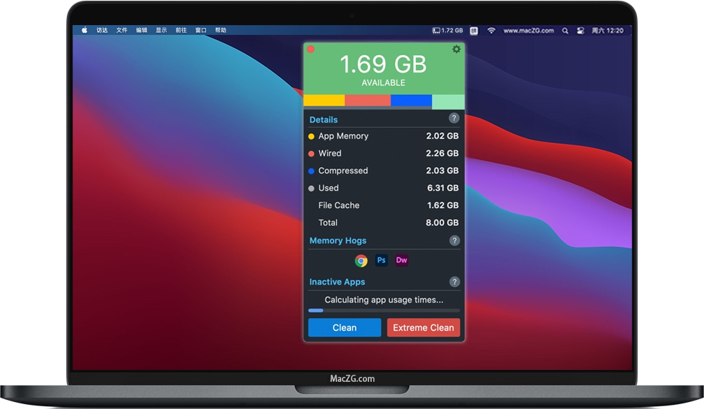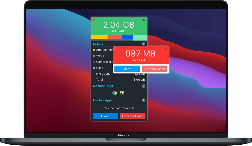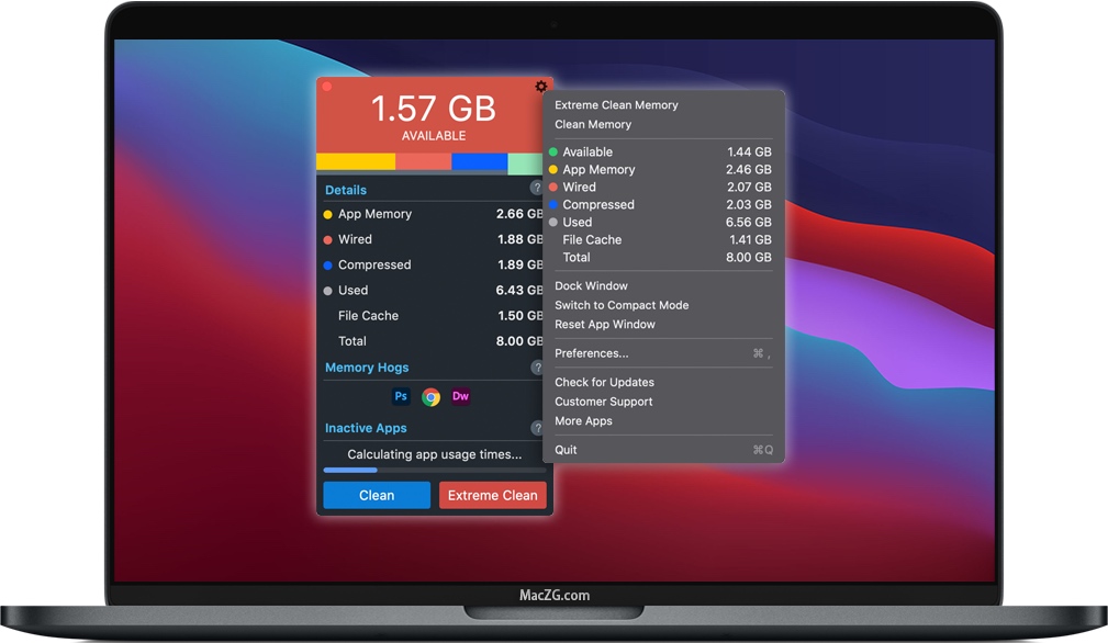 Memory Clean 3让您知道哪些应用程序占用了Mac上最多的内存,并且在关闭它们时可以自动恢复内存。
