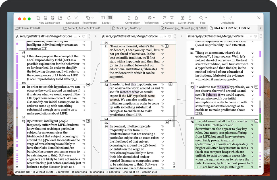 无论您是在处理文本文件的多个修订版,还是需要保持多个文件夹层次结构同步(例如,在台式机和笔记本电脑之间),Merge 都可以帮助您快速准确地工作,从而节省时间并减少错误。