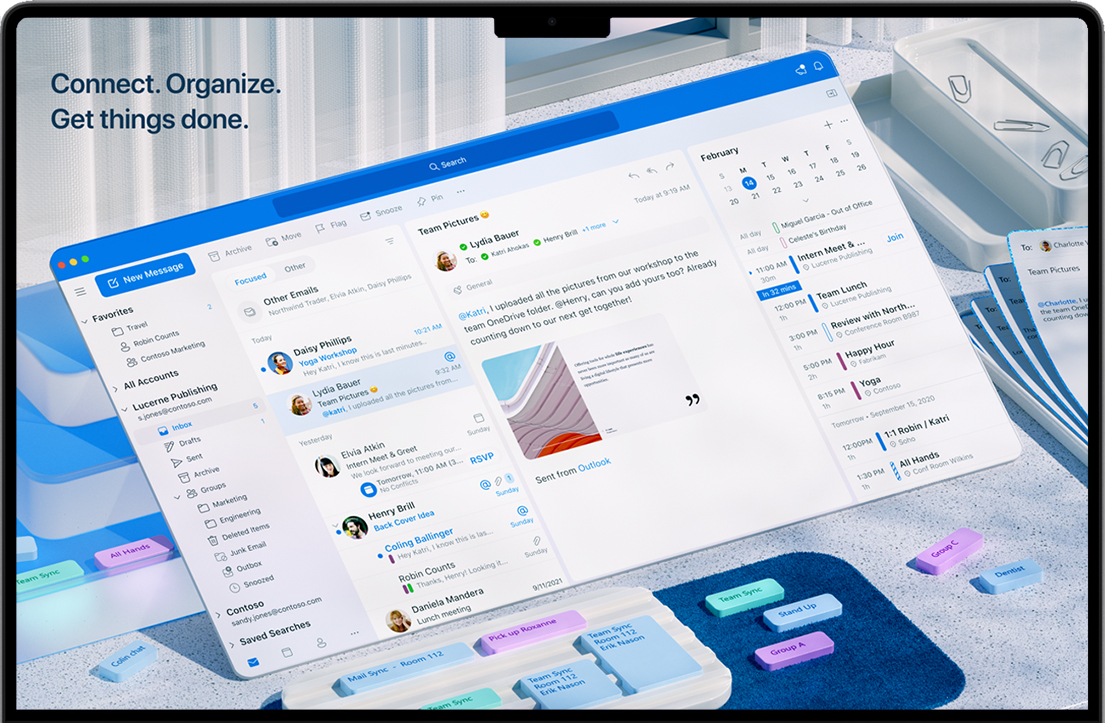 通过 Outlook 应用,可将所有电子邮件帐户和日历集中到一处。无论是随时掌握收件箱动态,还是安排下一个重要事宜,均可让你轻松实现最高效率、有条不紊并保持连接。