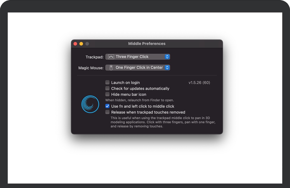 Middle for Mac 是一款苹果鼠标中键点击扩展程序。支持任何 Apple 触摸板 或 Magic 鼠标。适用于在 CAD 软件中平移,轻松将选定的文本粘贴到终端中,在新的浏览器标签中打开链接等场景。Middle适用于Intel和Apple Silicon支持任何Apple Trackpad或Magic Mouse苹果电脑。