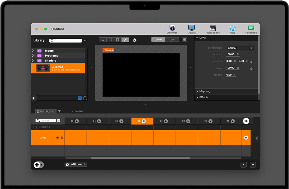 无需学习Millumin界面中的无缝版本。实际上,画布的行为是相同的,无论它使用本地输出还是MilluNode输出。 |