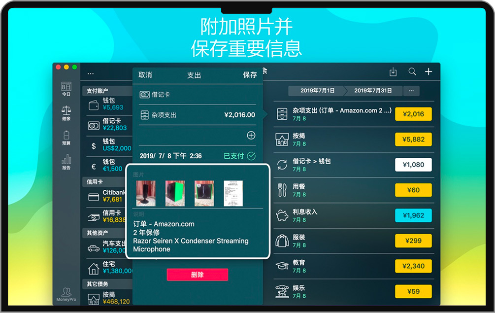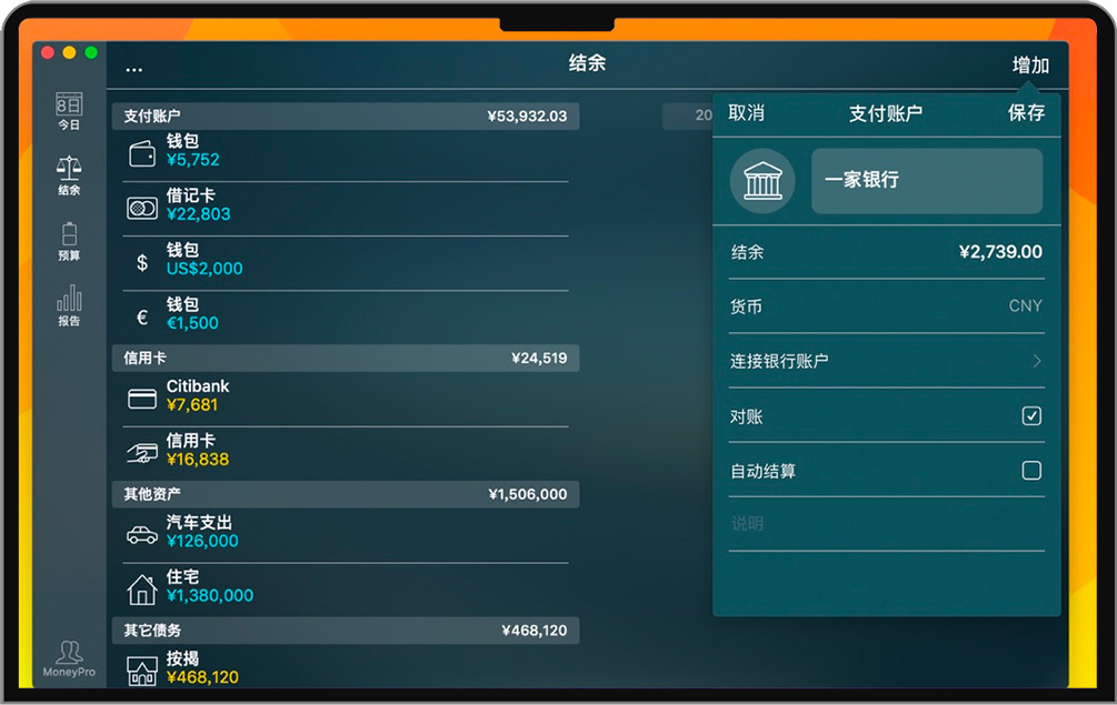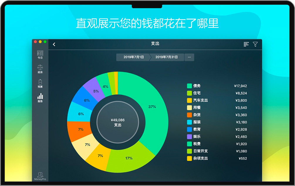 Money Pro for Mac 是一款功能强大、使用便捷的综合性个人财务管理应用。Money Pro是一套能够协同工作的工具,可用来追踪账户、管理账单以及制作预算。然而,它的用途远远不止如此,Money Pro最终的目的是给您提供一种能够让您掌控个人理财的手段,最终让您实现财务自由。