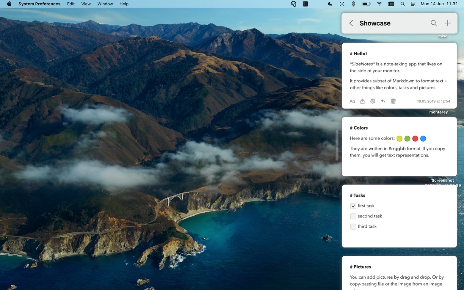 SideNotes是一个用于notes的边栏应用程序。它允许您在屏幕的一侧记录文本、图像甚至代码注释。在重要的想法溜走之前,轻松地提示记笔记者并记下它们。在这个方便的便笺应用程序中,可以使用颜色代码、任务复选框、将便笺保存到文件夹等。这一个不允许分心,只允许记录。