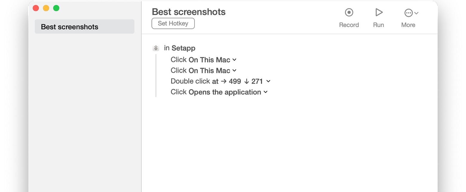 只需点击应用程序窗口中的记录,然后继续执行您想要自动执行的所有步骤——最后一次。