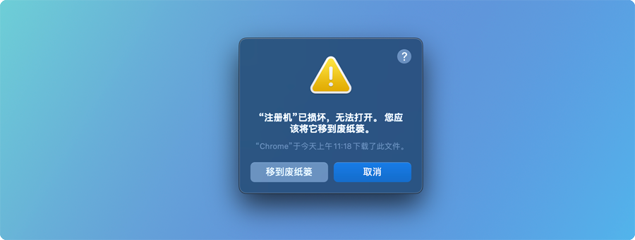 若注册机打开时出现“注册机”已损坏,无法打开。 您应该将它移到废纸篓的提示。