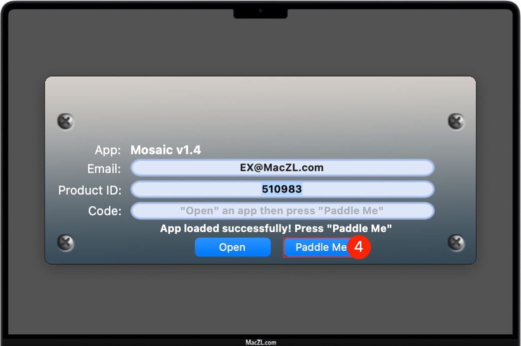 5. 选择Mosaic之后注册机的Product ID将自动获取完成,而后点击“Paddle Me”按钮即可注册完成!!!